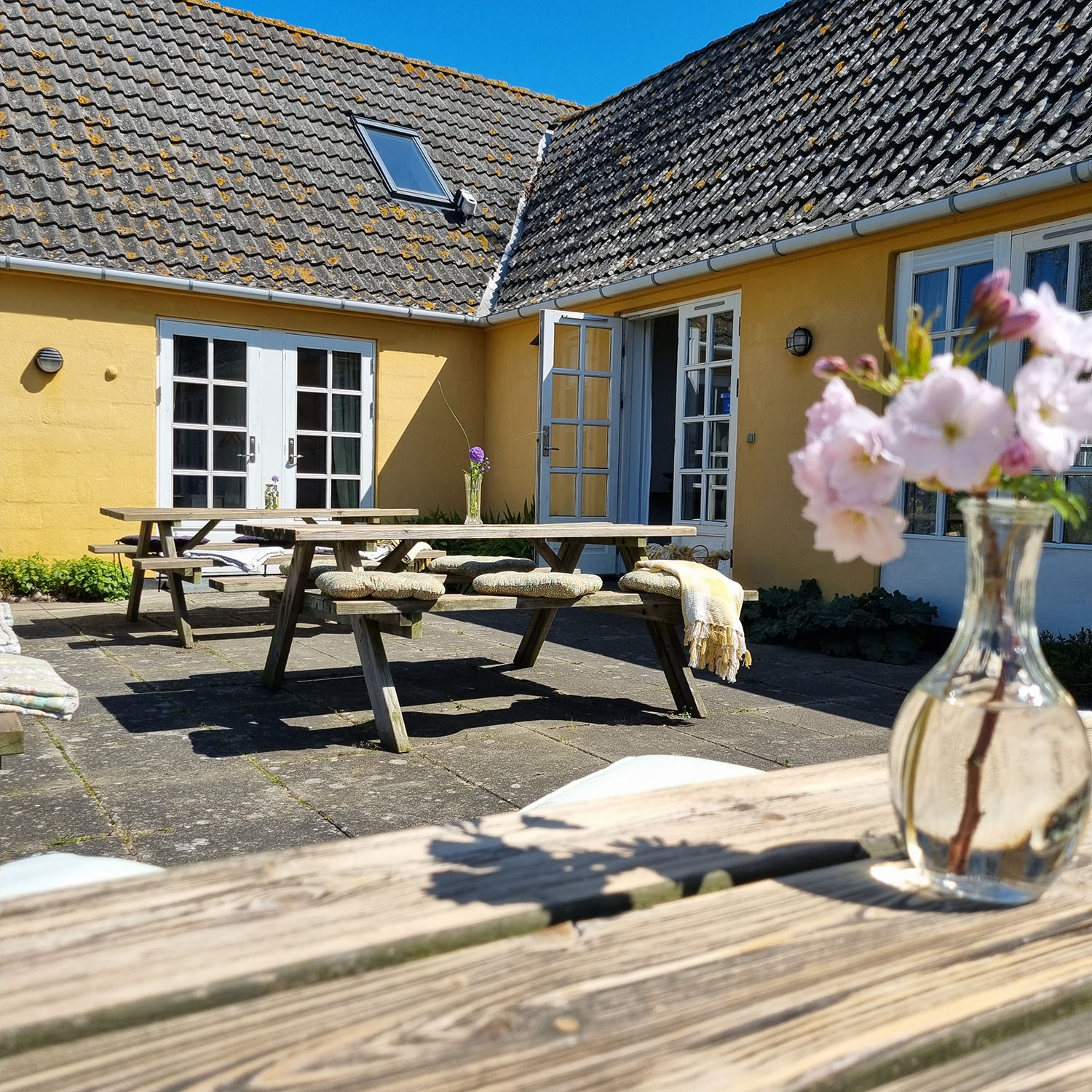 På Blåkærgård finder du både café og pizzarestaurant. Frokost og eftermiddag kan du få friskbrygget mokka eller te, dagens hjemmebagte kage, lækre sandwiches, frokostsalater og andre små retter. Om aftenen tænder de op i den udendørs pizzaovn, og de runde sager kan både nydes i haven eller inde i den hyggelige gård.